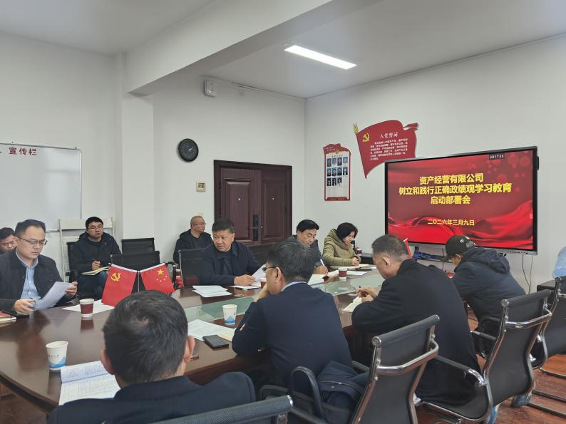 3月9日,资产经营有限公司召开党委(扩大)会议,启动部署树立和践行正确政绩观学习教育。公司党委书记张宁辉主持会议并讲话,公司党委委员、全体党支部书记参加会议。